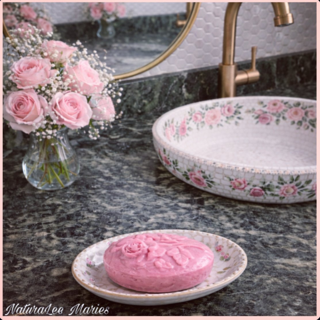 Celebrate your Bridal Shower with unique handmade favors with love by: NaturaLee Maries. Scented as if picked from a fresh Spring Rose Garden in color Blushing Rose. Made from goats milk with instilled properties such as vitamin E. These bars are moisturizing and exfoliating leaving a lasting impression for your guests. Floral designed in intricate details of Roses, Rose buds, leaves and stems. Packaged and sealed, then folded, tied and stamped in Muslin. The aroma scent lingers through and within the fabric. These bars can also be packaged in ribbon or gift wrap designs as well, perfect for your event. Give the gift of love with NaturaLee Maries Bohemian Rose Soap Bars. Measures 2.87 x 2.4 inches.