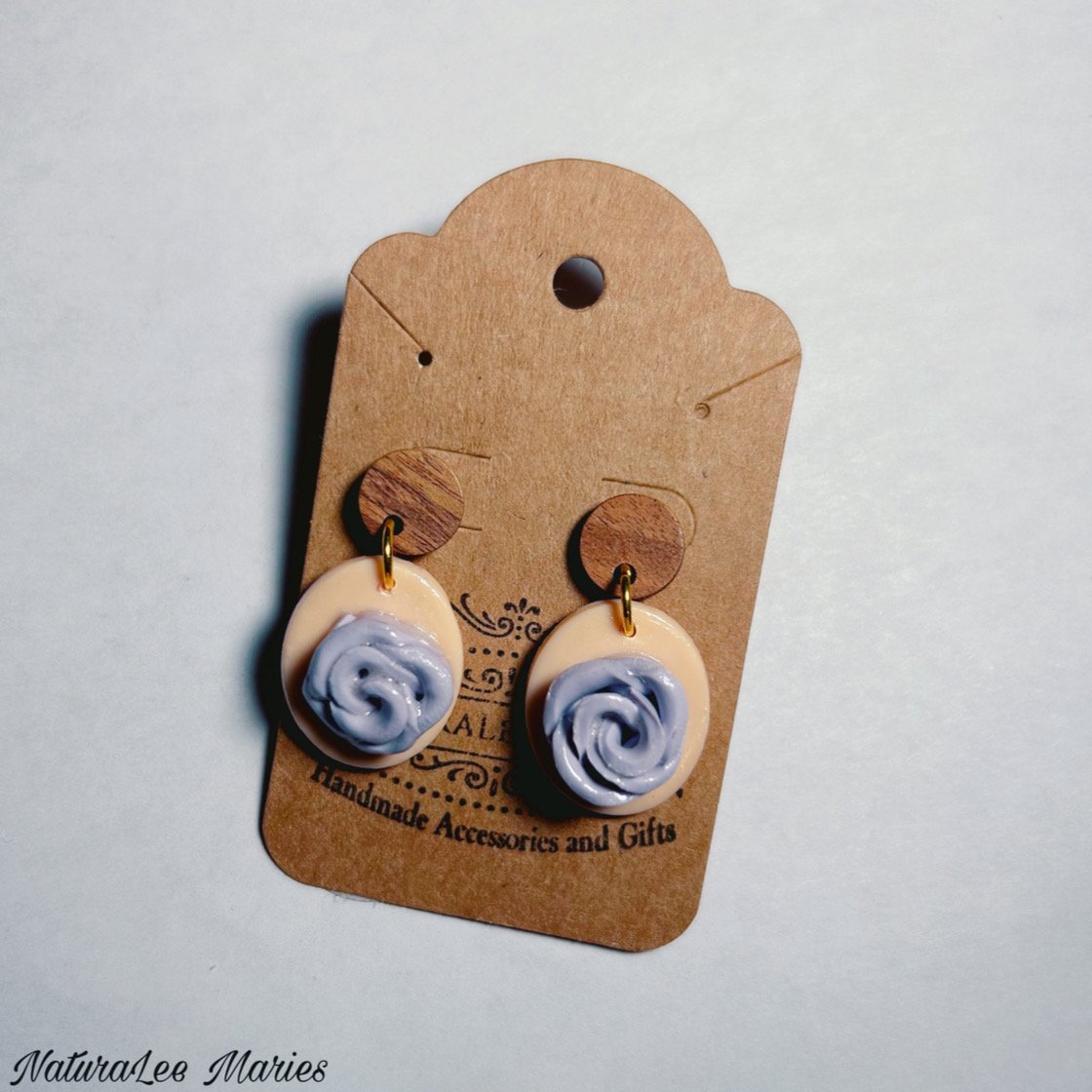 Beautifully crafted from our Southwestern Sunrise Collection 🌅 Handmade Roses set on Colored Plates. These roses are sculpted and made with care and love. Perfect for everyday wear or travel. Also great for Summer and Spring Seasons. Wooden post and Purple Rose set on Pink round plate, for pierced ears. Measures 1.5 inches long.